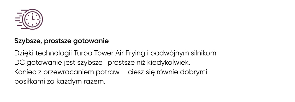 Technologia Turbo Tower Air Frying i silnik DC w obu koszach