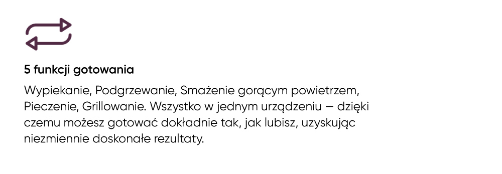 7 wstępnie skonfigurowanych programów: 5 trybów, 2 wielofunkcyjne